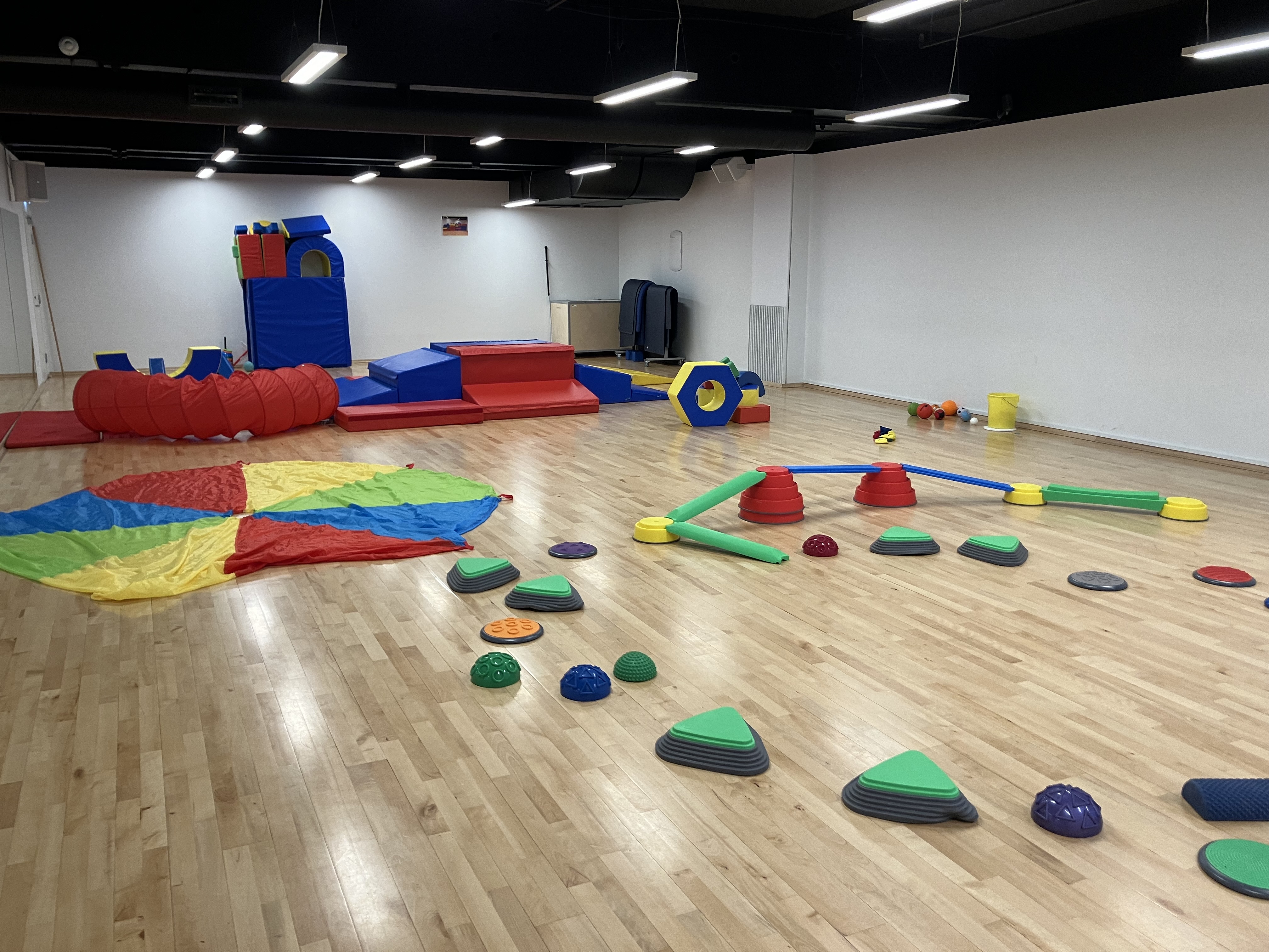 I vores rummelige holdsal har vi sørget for masser af plads til leg med bolde, store legeredskaber og sanselegetøj. Der vil desuden være opstillet en motorikbane på forhånd, hvor børnene kan udfordre sine motoriske færdigheder på en sjov og spændende måde. Medarbejder fra Grøndal MultiCenter (Uddannet Bevægelsesmentor/idrætslærer) vil facilitere lege og bevægelse i de 60 min.