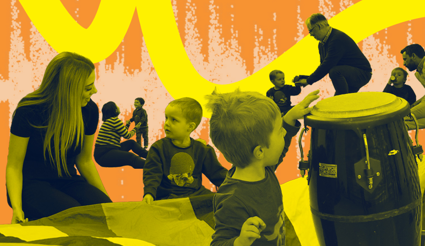 Musikundervisning for børnehavebørn i Børnekulturhuset Sokkelundlille i samarbejde med Københavns Musikskole.