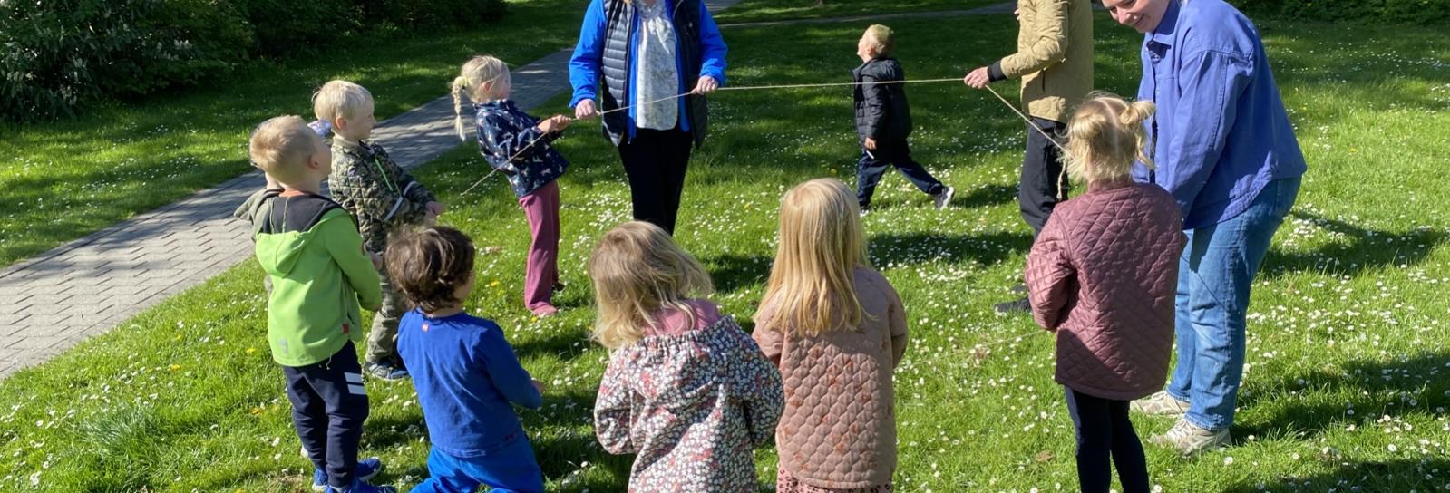 Gennem legene oplever børnene historien på egen krop og lærer at mestre nye ting.